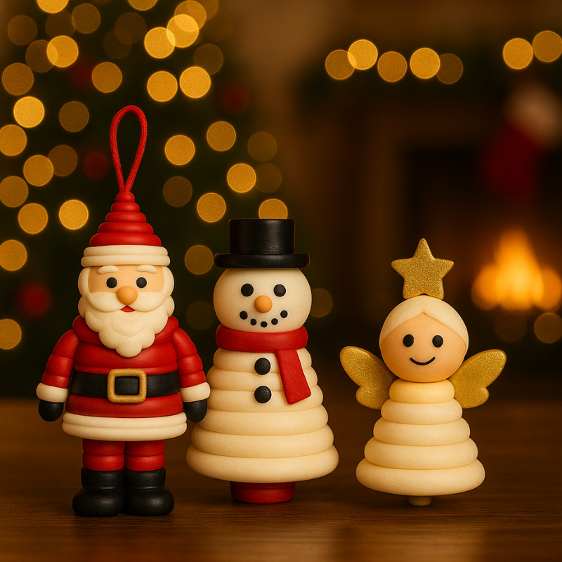 • Verfügbares Set: 3er-Pack (Weihnachtsmann, Schneemann, Engel)