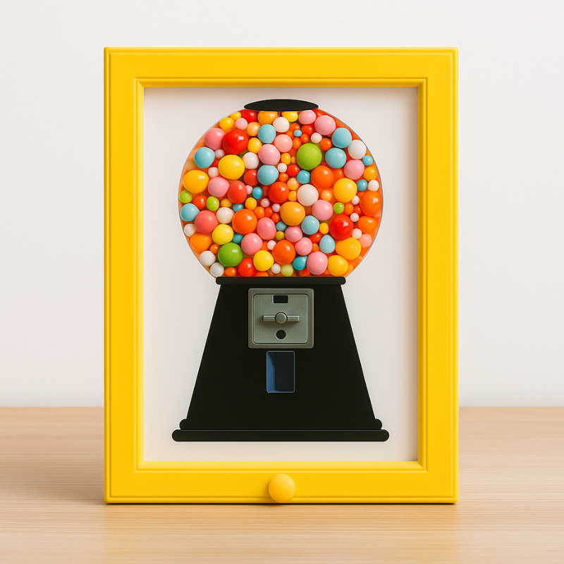 Naschen sollte Spaß machen – nicht kompliziert sein. Einfach deine Lieblingssüßigkeiten einfüllen, den Hebel ziehen und einen Moment purer Freude genießen. Ob in der Küche, im Büro oder im Wohnzimmer – der NaschRahmen macht jeden Tag ein Stück süßer.