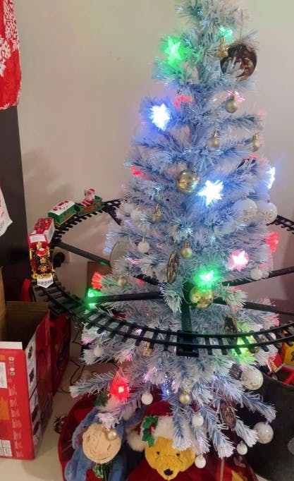 Verwandle deine Feiertage in ein herzerwärmendes Spektakel mit Baumfahrt, der bezaubernden, elf-inspirierten Weihnachtsbahn, die um deinen Baum gleitet und dein Zuhause mit funkelnden Lichtern, fröhlicher Musik und nostalgischen Familienmomenten erfüllt, die Kinder begeistern und das kindliche Staunen in jedem Elternteil und Großelternteil neu entfachen.
